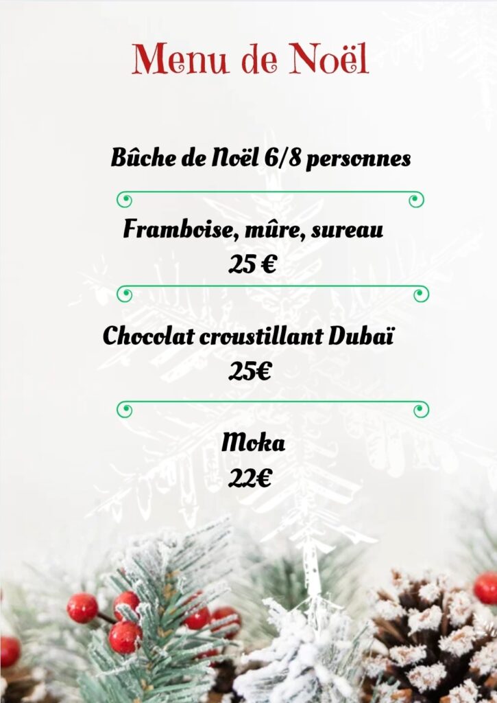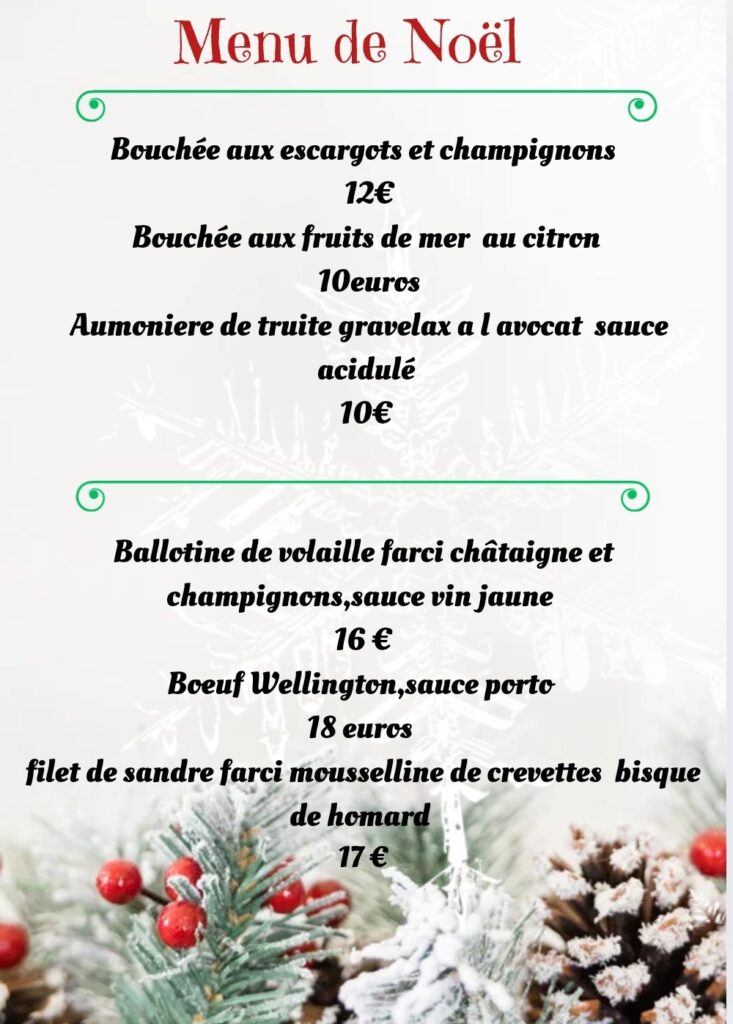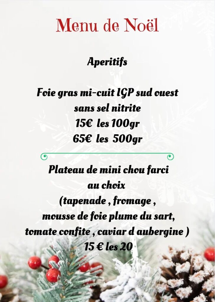 Voici mes propositions, traiteur pour vos repas de Noël, à commander avant le 17 décembre.